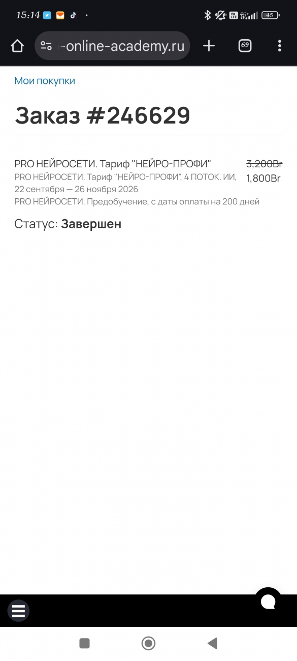 Второй курс я проходила по ИИ. Я ждала старт продаж несколько месяцев, так как знала, что ИИ хочу изучать только тут. Была на 100% уверена в качестве материала и в его объеме. И не прогадала