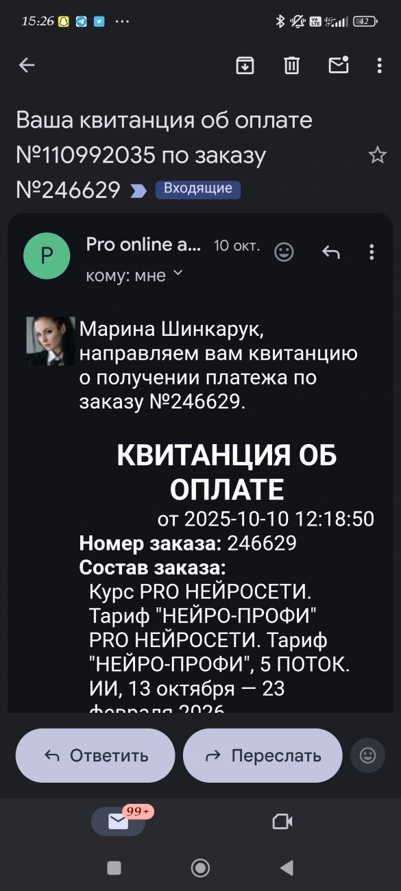 Добрый день! Меня зовут Наталья! Прошла обучение по программе PRO нейросети для контента, бизнеса и дохода!