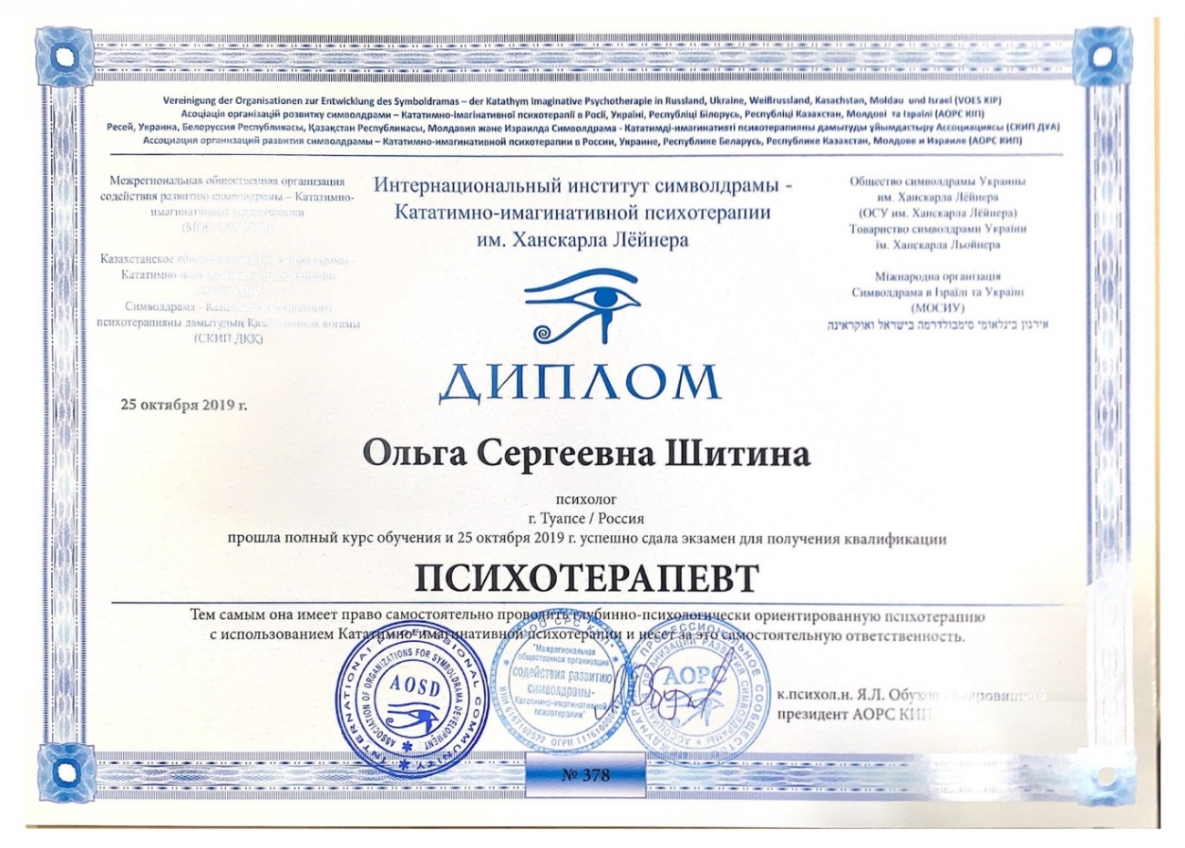 - Действительный член Общероссийской профессиональной психотерапевтической лиги