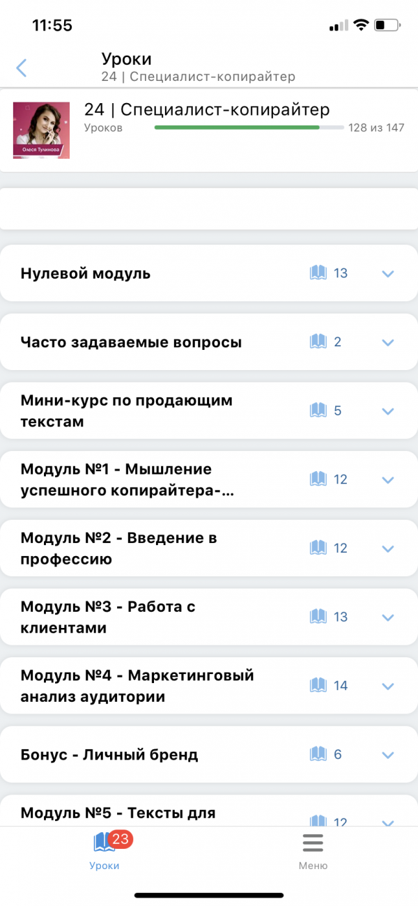 Я искала поиск удаленного заработка в интернете, и наткнулась в ВК на курсы Олеси Тулиновой по копирайтингу. Решила, что пора менять жизнь, обучиться новой профессии и развиваться в этой сфере. Проходила обучение в специальном приложении, ссылки, где можно найти клиентов нам предоставляли кураторы. Главное, в поиске клиентов быть настойчивым и терпеливым. Постоянная связь на канале телеграмм, где помогают кураторы, а так же Олеся. Курс получился полезным, информативным и оставил хорошее впечатление. За два месяца обучения я заработала только 2 отзыва, так как я не уделяла много времени на поиск клиентов. Но обучившись сейчас и получив диплом, я исправлю это и усердно займусь поиском.